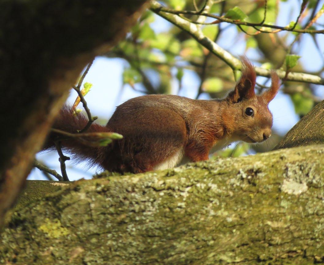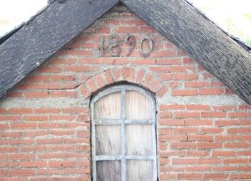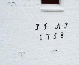 På endegavl til venstre for vindue på den østlige tilbygning.