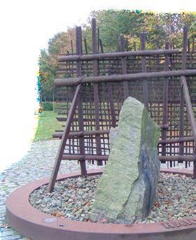 Udenfor på ydermuren ved siden af personaleindgang ved p-pladsen.