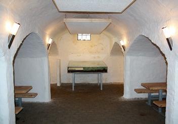 Ved brandslukkeren til venstre. Kun tilgængelig i åbningstiden.
