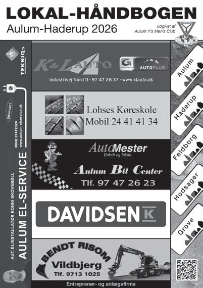 En stor tak til alle vore annoncører. Med optagelse af deres annonce i bogen får de ikke alene vist, hvem de er, og hvad de kan tilbyde, men de yder dermed også en stor hjælp i lokalsamfundet og internationalt. Aulum Y’s Men’s Club uddeler hvert år omkring 250.000 kr. hvoraf en stor del går til lokalsamfundet. Pengene komme dels fra LokalHåndbogen, Købmandsgårdens Genbrugsbutik, salg af juletræer, pyntegrønt og fyrtoppe.