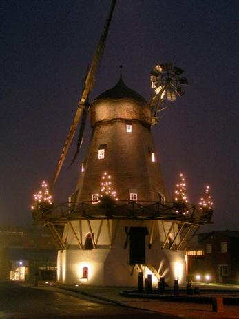 På ydermuren ved siden af personaleindgang til produktionen – ses fra virksomhedens p-plads. Blinkende lamper i mørke.