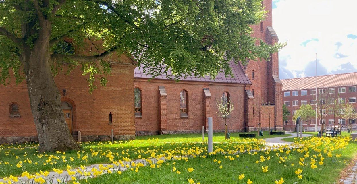 Måske har du lagt vejen forbi de snoede stier ved kirken, siddet på en af bænkene eller kigget på blomsterne. Der var mange ideer og tanker i spil, da arealerne omkring kirken skulle reetableres, efter kirkens tag blev skiftet i 2018. Nu står vi med resultatet. Fra et væld af ideer og streger på et stykke papir til granit, blomsterløg, bede, bænke, snoede stier og en indbydende plads ud mod Peter Sabroes Gade. Den bibelske have interagerer og åbner op ud mod kirkens nærområde og indbyder til refleksion, samtale og rekreation. Projektet blev muligt med støtte fra Salling Fondene.
