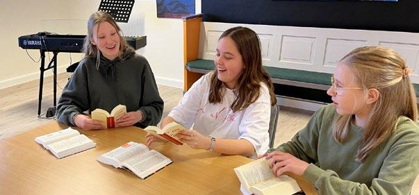 Det er tre velkendte ansigter, der møder mig, da jeg ankommer til kirkehuset i Lem. Ella, Liv og Kaya er blandt de 21 elever fra 7. klassetrin, jeg både hilser på til gudstjenester om søndagen og i løbet af ugen, når der er konfirmationsforberedelse. For at blive konfirmeret skal man modtage undervisning og deltage i 10 gudstjenester. Der er ikke undervisning i dag, men de tre piger har indvilliget i at mødes for at fortælle lidt om de tanker, de gør sig om konfirmationen i maj og alt det, der hører til.