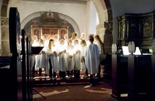 Andagt og luciaoptog med kirkens børnekor i kirken.