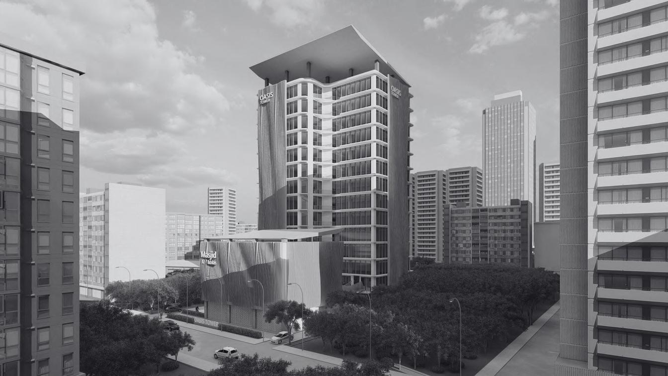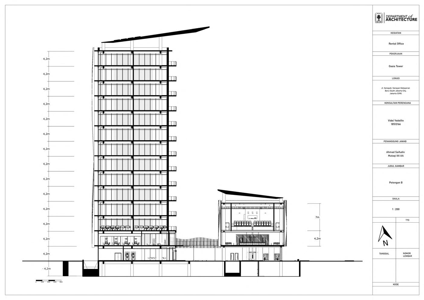 The design of the Oasis Tower is based on the background of selecting an area located in the city of Jakarta This design process uses an approach to Performance Based Design by emphasizing Green Building design variables in the form of Appropriate Site Development (ASD), Water Conservation (WAC), Indoor Health Comfort (IHC), Energy Efficiency and Conservation (EEC), and Safety and Security (SS), and Material Resources and Cycle (MRC)