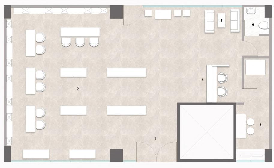Main Entry Display Area Reception Area Sitting Area Refreshment Area Wall mounted Display Pantry Area Visual Merchandise Entry