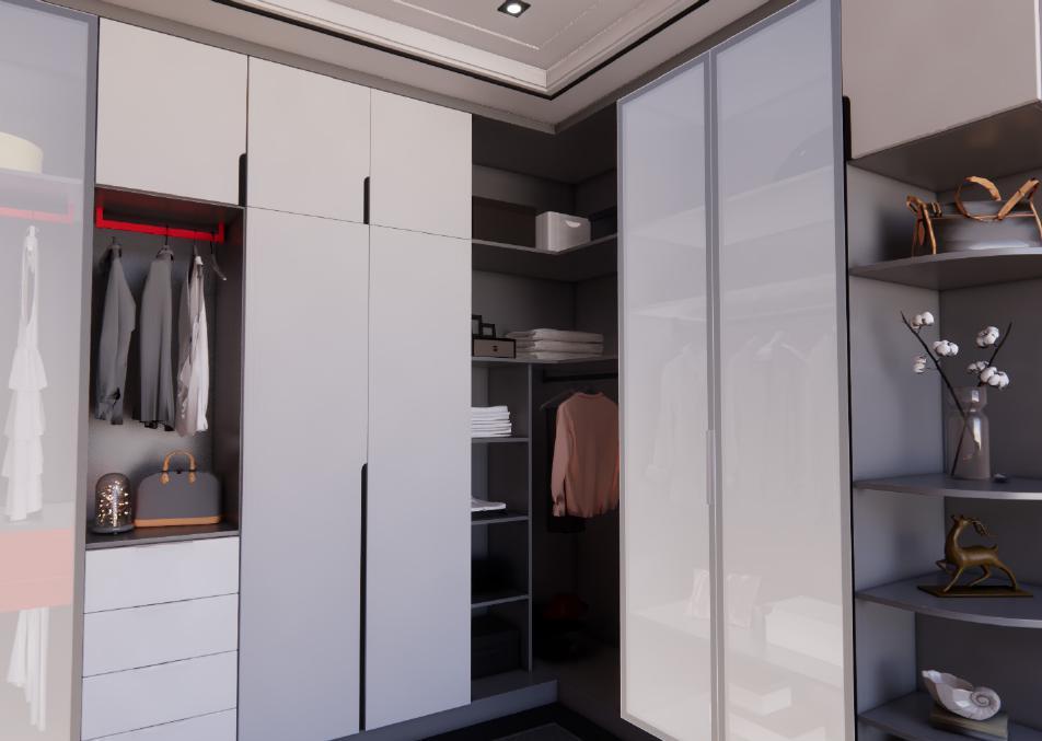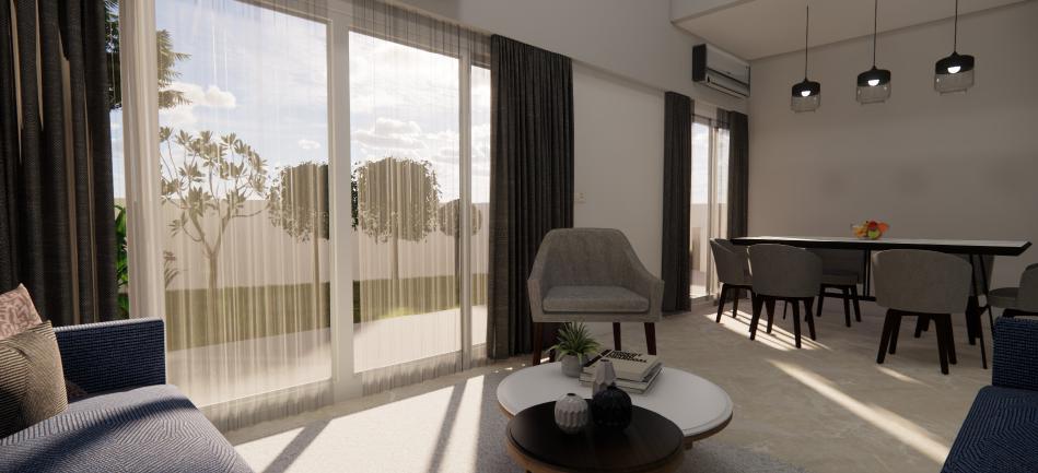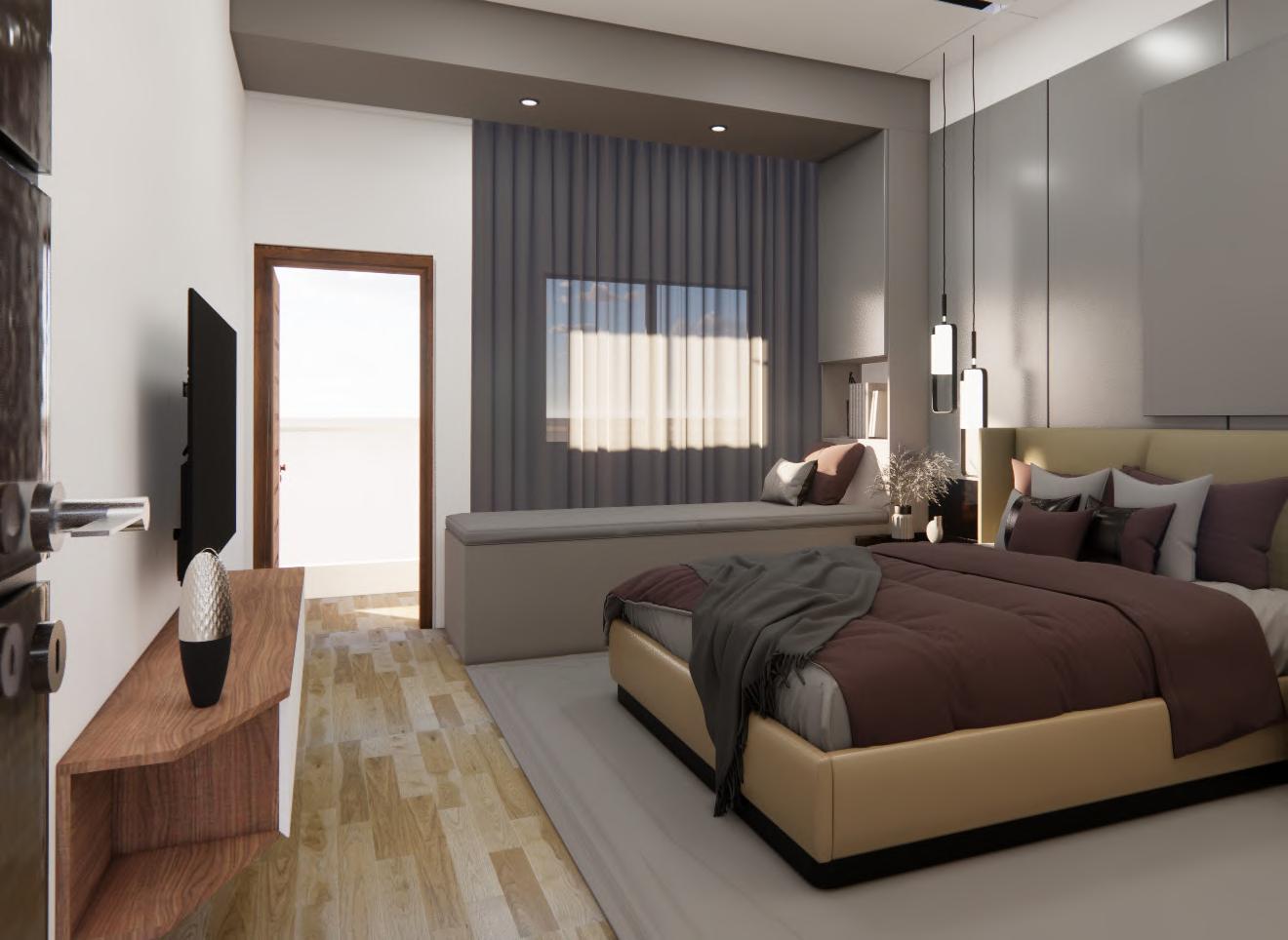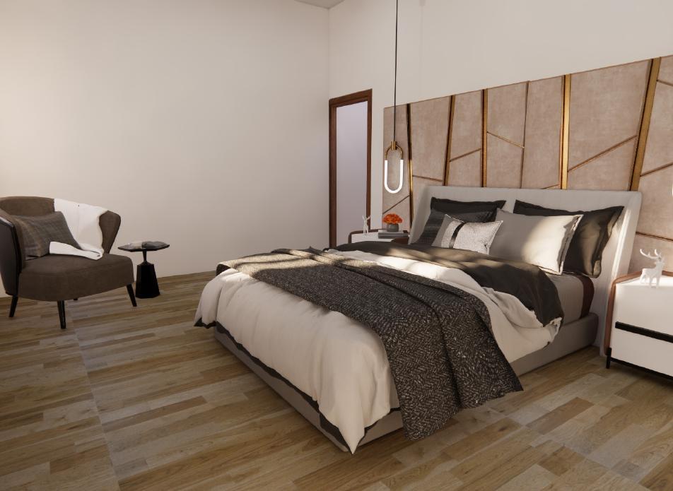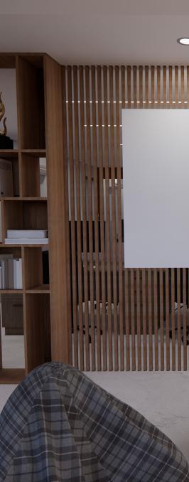The idea was to create a space which is clutter free but at the same time cozy and warm using modern and minimal style.