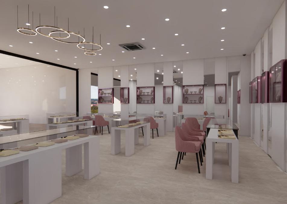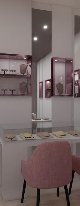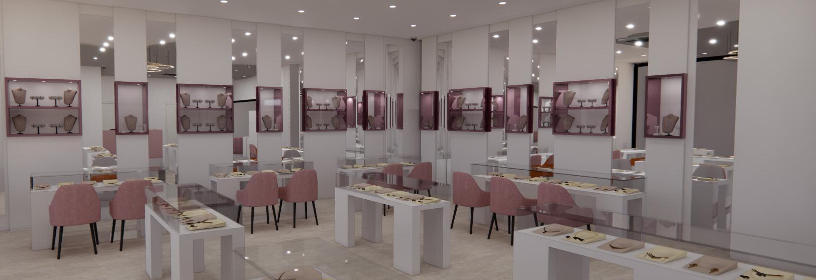 The concept behind this design was to demonstrate the brand image in the store by creating a pleasing and clean atmosphere and also to have a bridge between the customers and their displayed jewellery.