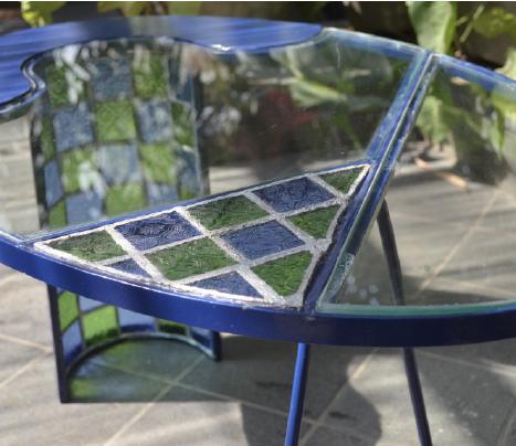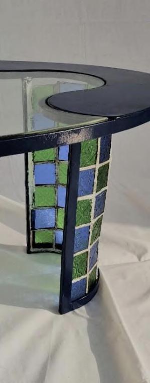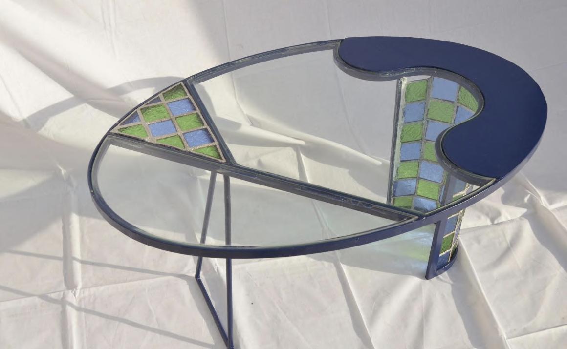 Exploring glass as a new material, designed a center table using float glass, texture tinted glass and iron rods. Following assymmetry, one of the leg had glass soldering and an accent of the same on the table top.