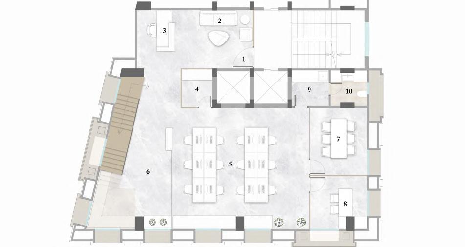 Workspace Director’s Cabin Conference Room Sales Cabin Pantry Area Waiting Area Reception Area Refreshment Area CEO’S Cabin Breakout zone