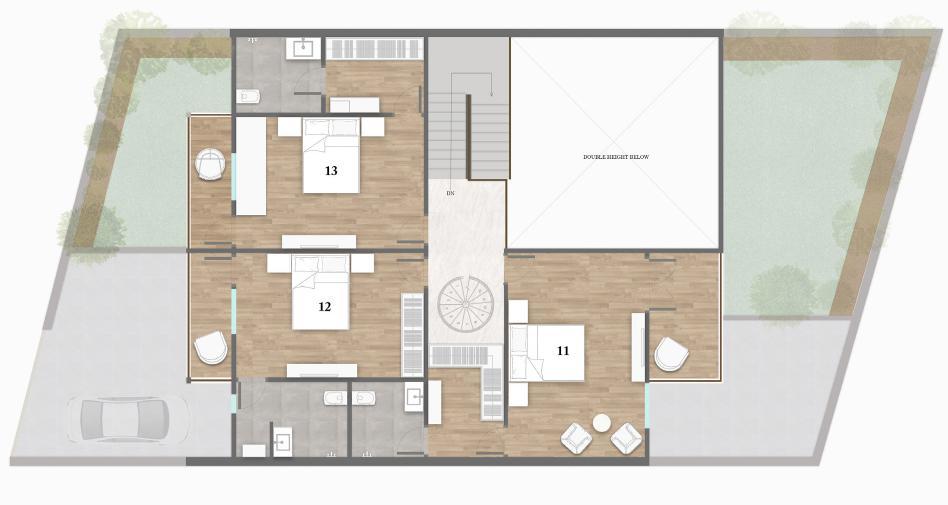 1. Entry 2. Waiting Area 3. Reception Area 4. Server Room 5. Workspace 6. Breakout Area 7. Dining Area 8. Cabin 1 9. Pantry Area 10. Refreshment Area 11. Waiting Area 12. Conference Room 13. Cabin 2 14. Cabin 3 15. Director’s Cabin 16. Safe Room