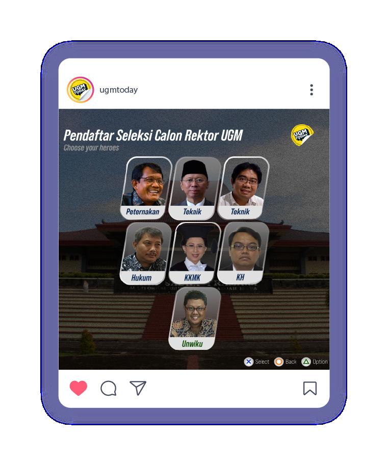 UGMtoday is a journalistic media community that presents alternative news about UGM and national issues on Instagram with 31.9K followers (April 2022). In this work, i’m designing curated news into graphic content and processing news that occurs at UGM and nationally into news For more information, you can visit : instagram.com/ugmtoday/