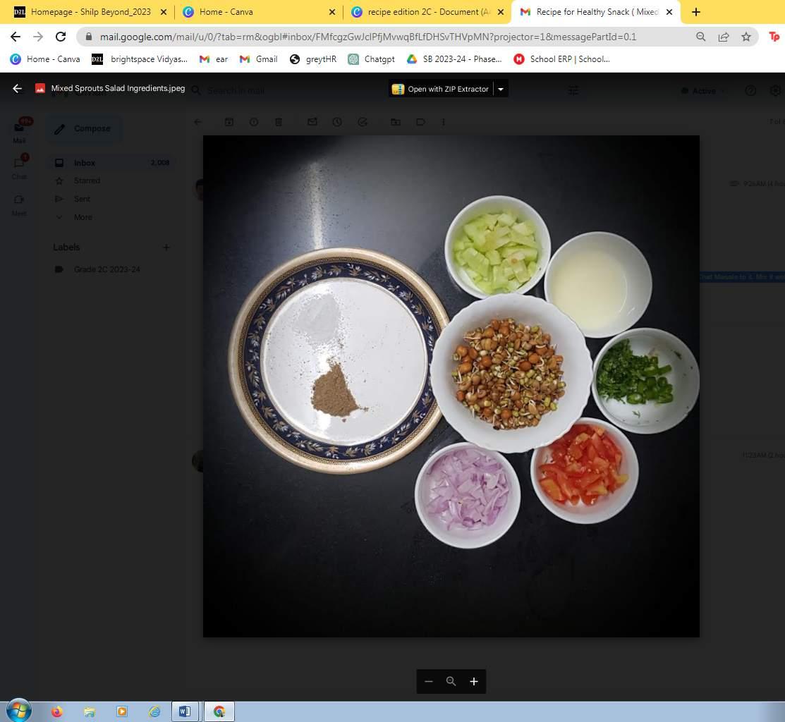 Recipe : Take Mixed Sprouts in a bowl, add the required quantity of the Chopped vegetables and add a spoon of lemon juice. Add a little Salt and Chat Masala to it. Mix it well and garnish it with Coriander Leaves. With this the Mixed Sprouts Salad is ready to be Enjoyed with the entire Family.