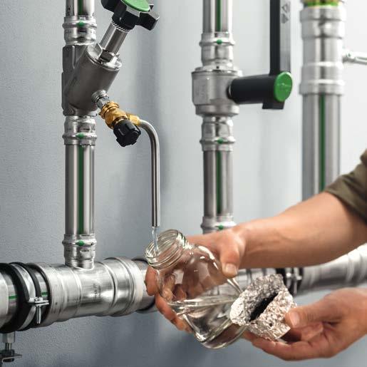 Ein integrierter Schiebebereich erleichtert dabei zum Beispiel den nachträglichen Einbau von Armaturen wie Schrägsitzventilen in bestehende Rohrleitungen. Dank der kalten Presstechnik ist die Montage schnell und sauber, die integrierte SC-Contur sorgt zusätzlich für Sicherheit: Nicht verpresste Verbindungen werden bei der Dichtheitsprüfung sofort sichtbar.