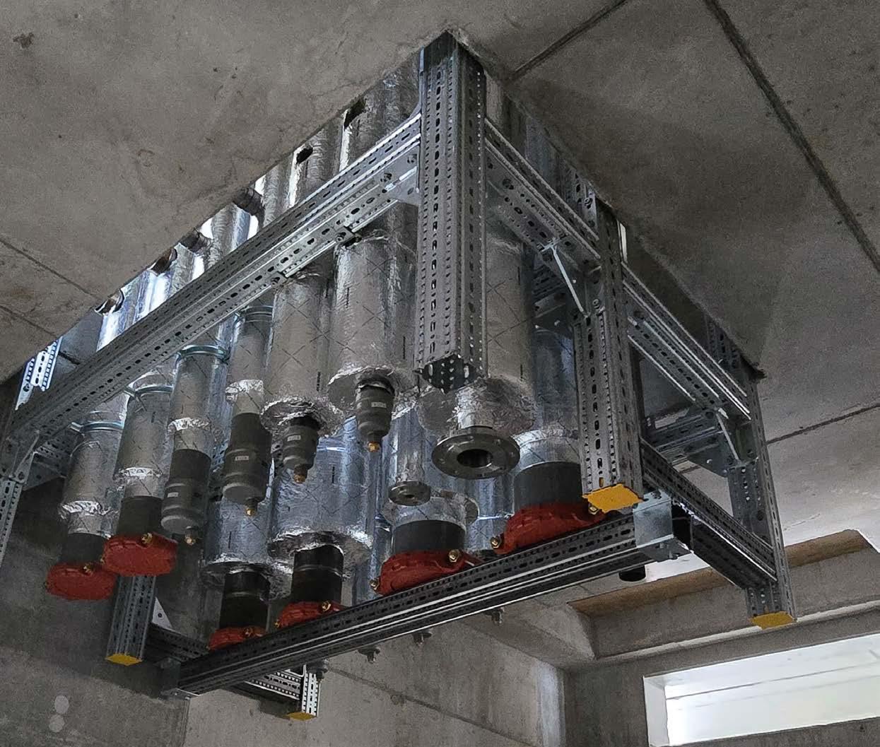 Rohrleitungen bilden die Belegung, alle wurden im Werk vorab gedämmt und montiert