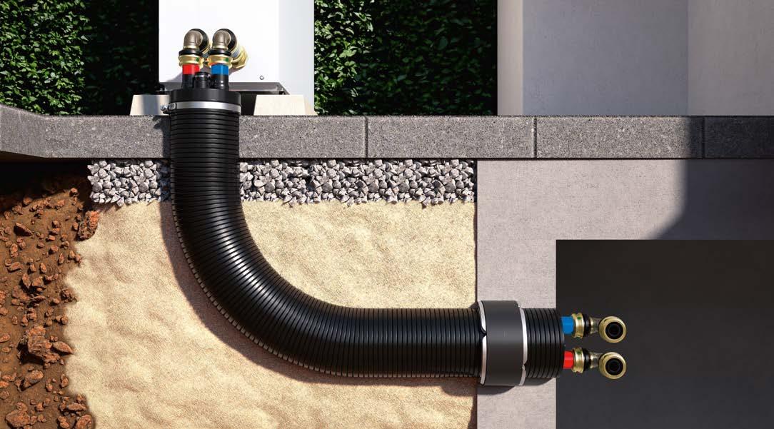 Wenn der Systemverbund schon vor dem Haus beginnt: Das neue Anschlussrohr von Viega bindet MonoblockWärmepumpen zuverlässig ein.