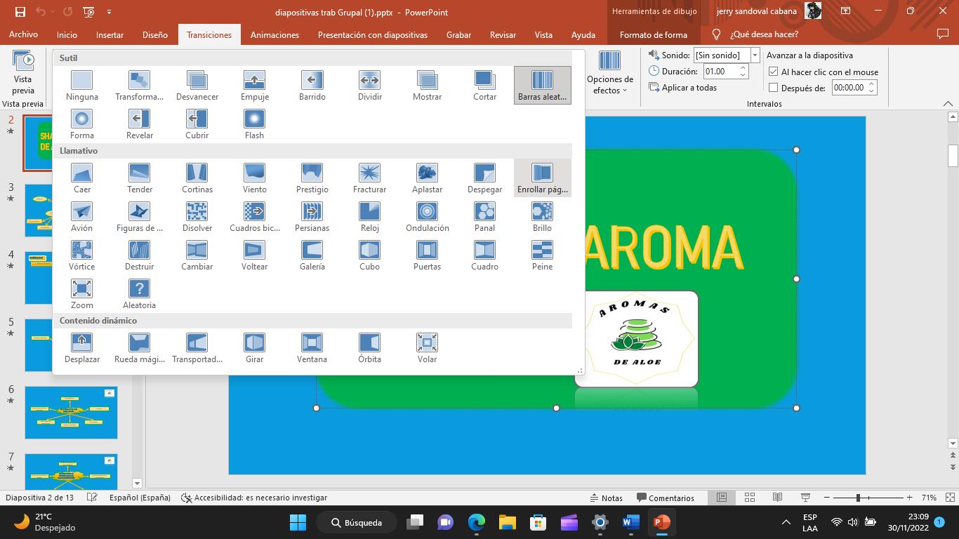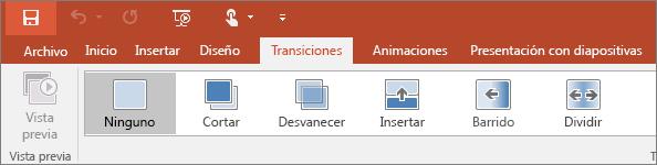 Aquí escogerás tu transición , la que mas se adecue a tu a diapositiva.