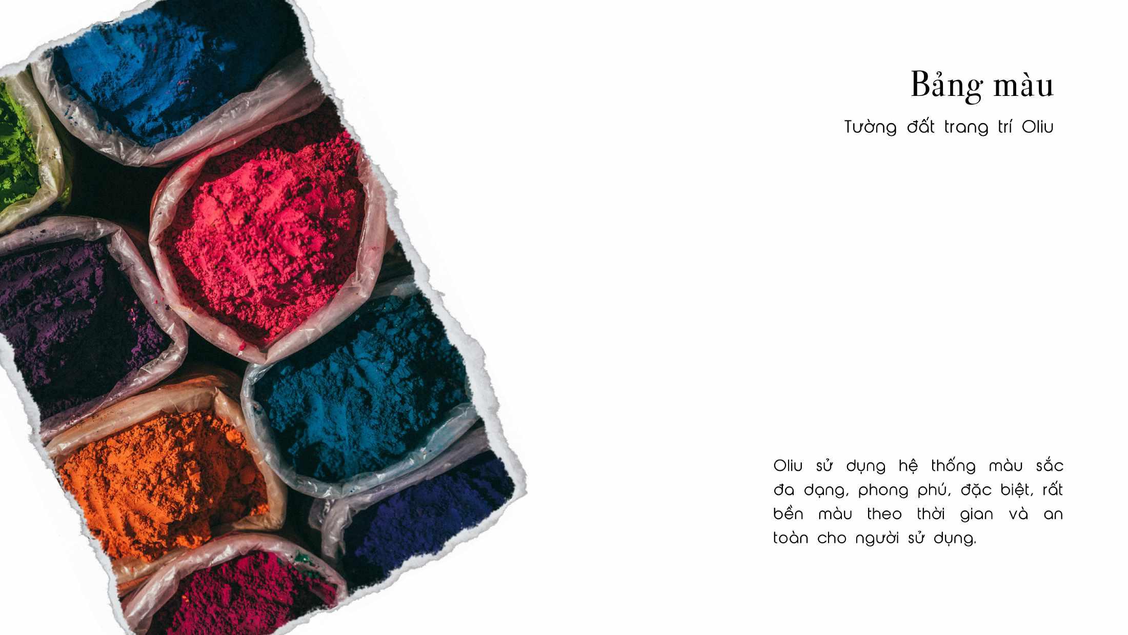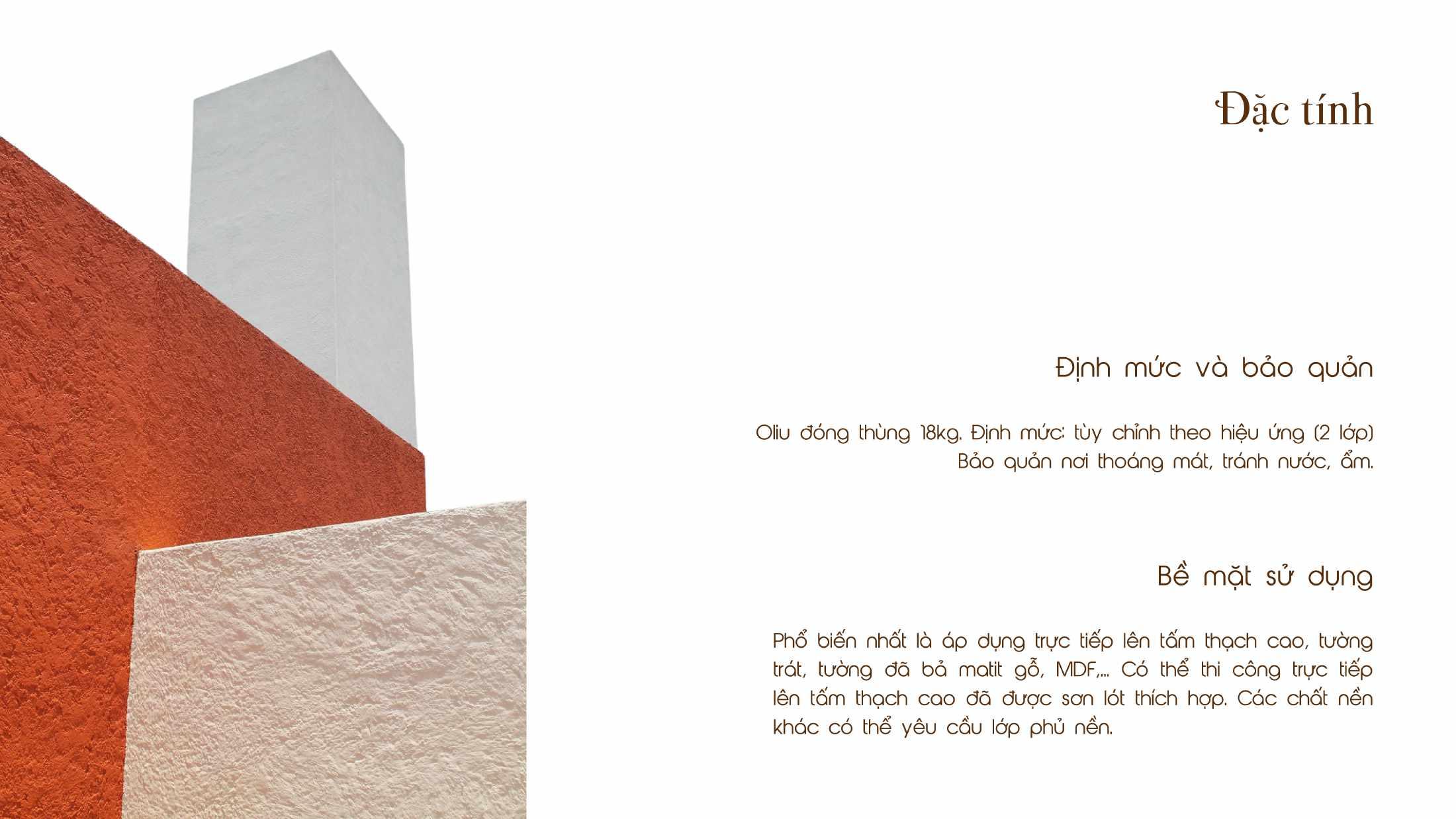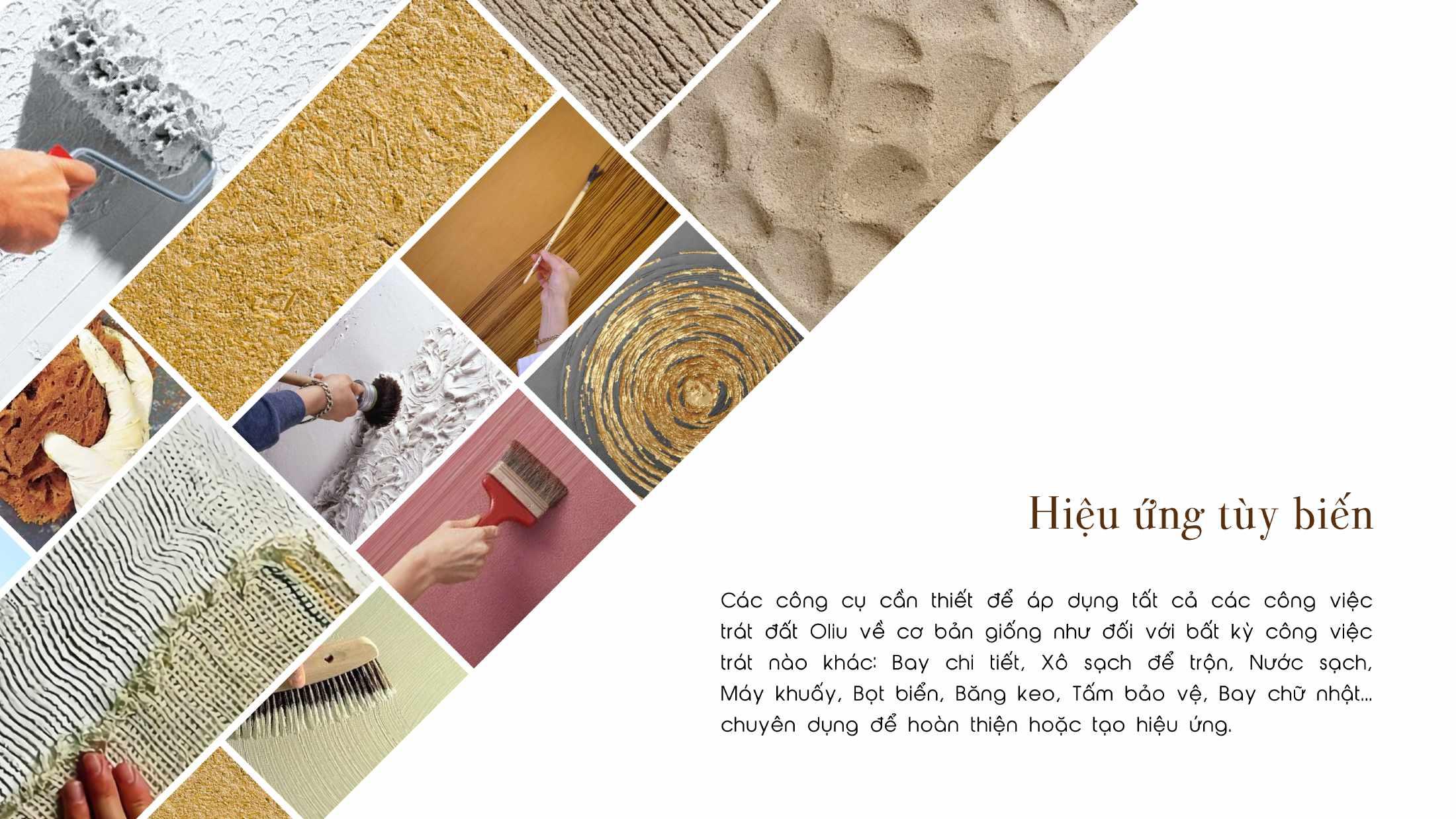 Sơn đất Oliu là sản phẩm hoàn thiện bề mặt tường với nhiều hiệu ứng đặc sắc. Sơn đất Oliu có chất cảm tốt, dễ thi công trên các chất liệu như tường bê tông, tấm thạch cao, tấm cemboard…