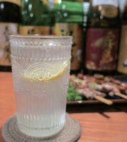 レモンサワーにはこだわりあり! 輪切りにしたレモンを皮と果肉に 分け、レモンを上白糖と交互に重 ねたらジンをたっぷり注いで1ヶ月 間しっかりと漬け込む。熟成され たレモンとジンのハーモニーが存 分に楽しめる。