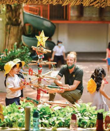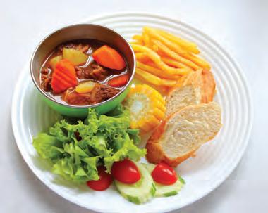 84 2022年12/31(土)までに入学を申し込 むと、申込金4600万VNDを免除 2~11歳の子どもたちが通う「サイゴンス ターインターナショナルスクール」では、1日 1回の昼食と2回の軽食を提供。創立17 年の経験から、栄養価が高く快適な雰囲 気の食事が生徒の成長に不可欠だと理 解している。 給食の献立はアジア・西洋・ベジタリアン 料理などバラエティに富む。小学生以上が ビュッフェ形式なのは、自主的に料理を選 び適量を自分で決めることで、食べ物を無 駄にしない意識を養うためだ。またベトナム 料理なら箸の使い方、西洋料理ではナイフ とフォークの使い方も身につける。 教師たちも生徒と一緒にテーブルを囲み、 おしゃべりしながら食事を楽しむひと時も大 切な教育の一環だ。 おやつ2回とランチ1回 快適な雰囲気を重視 プロモーション Promotion 食堂の壁に描かれた竹が涼しさを演出。木製テー ブルは生徒の年齢や身長に合うよう、さまざまな高 さで設計されている Saigon Star International School サイゴンスターインターナショナルスクール Saigon Star International School Area 5, Su Hy Nhan St., Thanh My Loi Ward, Thu Duc 088 800 6996 @saigonstarschool @saigonstarschoolvn www.sgstar.edu.vn ビュッフェスタイルの昼食で 食材をムダにしない意識を養う ローストチキン ビーフシチュー カニ汁米麺 砕いた田ガニ入りの北部料理 フライドポテトやバインミーと楽しむ 茹でた海老、ミートボー ル、豆腐、トマトなどの 野菜をトッピング レモングラスのタレで焼いたチキンと 炒めた野菜でごはんが進む 大きなジャガイモやニンジンがゴロっと 入ったベトナム風ビーフシチュー 1週間の献立 月 火 水 木 金 酢豚、チーズソースのフジッリボロ ネーゼ、エノキタケのフライ、ひき肉 とニンジンのお粥、など 鶏ミンチとキャベツ、卵入り豚の角 煮、チーズソースの海鮮トッポッキ、 野菜カレー、など カニ汁米麺、豚ひき肉とキクラゲの 蒸し卵、さつまいもの蜂蜜焼き、など つみれ入り米麺ブン、ローストチキン、 牛肉のラザニア、焼きシメジ、など ビーフシチュー、干しエビと紫芋の スープ、チーズ入りシェイクドフライ ドポテト、など