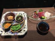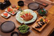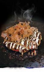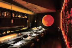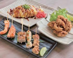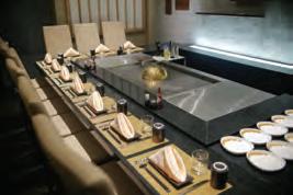 江戸モダンの艶っぽい空間で250品に上る料 理が楽しめる居酒屋。厚さ25mmの鉄板焼きカウ ンターで炎のパフォーマンスと共にソースを絡めな がら焼き上げる串焼きは、具材も味のバリエーショ ンも幅広い。焼酎や20種類の日本酒などとともに、 小皿料理を囲んでワイワイ楽しめるスタイルだ。夜 風が心地よいテラス席もある。