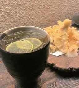個室が充実し、ビジネスでの 食事会にぴったりの和食の店。 陶器グラスで供される「レモンサ ワー」は種なしライム、吟大陸、氷 をよく混ぜてソーダを注いだもの で飲みやすい。
