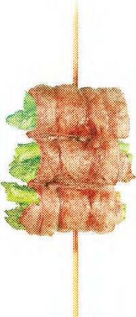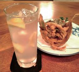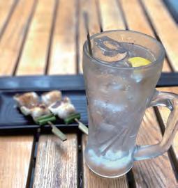 深夜3時まで営業している「居 酒屋半蔵」は、「忍者並みの早い サービス」がウリ。七味粉、胡椒 などでいただく焼き鳥と共に、日 本人プロバーテンダーのオー ナーによるオリジナルレモンサ ワーをぜひ。