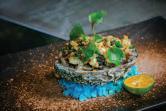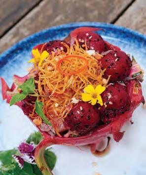 79 「スケッチを見た」と伝えると、「牛肉の春巻 き/Beef Spring Roll」または「ピンクグア バコンブチャ/Pink Guava Kombucha」 を進呈。2022年12/31(土)まで 茶色、白、緑の色調でインドシナ風を演 出する「マダムラム」は、高級食材とクリエ イティブな調理法で、ベトナム料理の新し い形を提供している。食材の鮮度や持ち 味をいかした品々は、洗練された風味で外 国人にも親しみやすい。 中部ビンディン(Binh Dinh)出身のシェ フ、クオンさんは、国内各地のハーブやスパ イスを巧みにあやつる。 「中部特産バジルのラーエーや、西北部の 花椒マックヘン(Mac Khen)など、様々な ハーブや薬味を使っています」 ベトナム中部をイメージしたという「ソフト シェルクラブの揚げ春巻き」は、黄色の砂 (春巻きの皮)、草原の緑(野菜)、海の風味 (ソフトシェルクラブ)をラーエーのソースで。 ベトナムの薬味を駆使した 新感覚の料理の品々 プロモーション Promotion 伝統をいかした ベトナムコンテンポラリー料理 エビ、豚肉、揚げたイカをヌックマムの特 製ソースと和えた「ザボンと赤いドラゴンフ ルーツの和え物」は、フルーツの甘酸っぱさ が爽やかな印象。「一口チョウザメのカ シューナッツ炒め」は、揚げたチョウザメとカ リッとしたナッツの食感、ウスバナコショウの カラシのような風味がよいアクセントだ。 食後には「ゴマ菓子/Keo Vung」と北 部特産「水翁のつぼみ茶/Tra Nu Voi」 が無料サービスされる。「最後までご満足い ただきたい」というシェフの心遣いだ。 料理コンテスト「2015 年ゴールデンスプーン アワード」で準優勝に 輝いた、料理人歴15 年のオーナーシェフ、 クオン(Nguyen Nhu Cuong)さん ベトナム中部の特産バジルの一種 「ラーエー/La E」の香り高いソース でいただく。31万9000VND 「ザボンと赤いドラゴンフルーツの和え物/Goi Buoi Thanh Long Do」14万9000VND 「一口チョウザメのカシューナッツ炒め/Ca Tam Luc Lac Hat Dieu」18万9000VND Madame Lam マダムラム Madame Lam 10 Tran Ngoc Dien St., Thao Dien Ward, Thu Duc 070 322 6262 7:00~22:00 21:45 なし @MadameLamRestaurant @madamelamrestaurant とっておき シェフの ソフトシェルクラブの揚げ春巻き Cha Gio Cua Lot