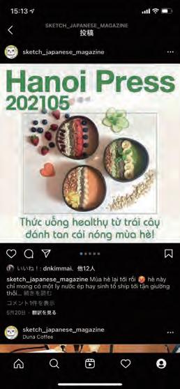誌面で紹介した特集や新着情報、 コラムなど、全記事をアップ! 在住者・旅行者に分かりやすく 北部、中部、南部と地域ごとに掲載しています。 www.vietnam-sketch.com Website 誌面記事のシェアほか、 タイムリーな最新情報も発信! @vietnam.sketch 毎日更新中! ベトナムの美味しい& 楽しいを写真で紹介! @vietnam_sketch _magazine 友達登録するだけで、 新ネタが手に届く! @ejb7898v 編集部員がつぶやく、 ベトナムの日々。 @vietnamsketch SKETCH ONLINE MEDIA スケッチ オンラインメディア 各デジタルメディアでも情報を発信中! 12