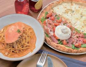「自家製チーズの盛り合わせ」(小)9万5000VND、「渡り蟹のト マトクリームスパゲッティ」24万8000VND、「4種のチーズピザ」 (12万9000VND~)と「ブッラータパルマハムマルゲリータ」 (14万9000VND~)のハーフ&ハーフ 「鉄板串盛りお任せ5種」16万9000VND、「とん平焼き」8万 9000VND、「An名物! 鶏からあげ」9万9000VND