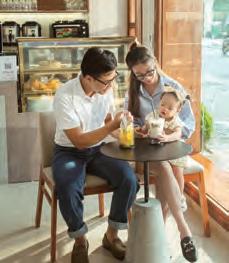 店舗の内外にしなやかな曲線を生かした デザインを取り入れ、緑あふれる周囲の景色 を存分に楽しめる造りが目を引く。テラス席 は雨でも快適に過ごせ、ライトアップされる夕 方からはロマンティックな雰囲気を演出する。 ビンズオンでは4号店目となるミルク ティーの有名店で、年齢・性別を問わず幅 広い客層に人気。全30席で、各所にコン セントが配されている。ザロ(Zalo)や電話 でデリバリーにも対応。 とくにフルーツティーが人気のカフェで、 全36席。とくに夕方からは学校帰りの高 校生や大学生でにぎわう。プリンやミート パイなどの軽食も販売。宅配はショッピー フード(ShopeeFood)で対応。 090 118 8921 (月~金曜)11:00~14:30 / 17:00 ~23:00、(土・日曜)11:00~23:00