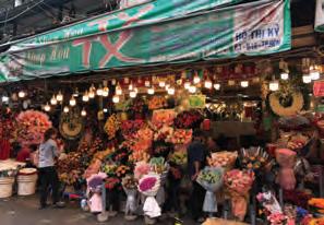 犠牲となった。 ホーティキー通りは主に花のエリアと 屋台のエリアに分かれる。花のエリア は、1987年に設立されたサイゴン(現ホー チミン市)最大の生花の卸売市場で、午 前3~7時に最も活気づく。ダラットや南西 部から仕入れた生花は価格が手頃だ。夕 方17時ごろから始まるグルメ街は深夜1時 まで賑わいを見せている。