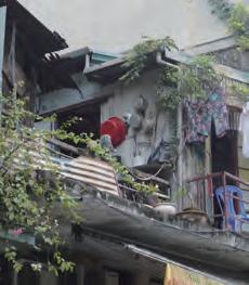 このあたりの建物は、住居が店 舗の上階にあるか、幅が1mにも 満たない狭い路地の奥にある のが一般的。不便さから家を売 却や賃貸に出す人が多いが、家 を売れば家族の生計が成り立 たなくなる人がいるのも現実だ インスタ映えスポットとして多く の人々が写真を撮りに訪れる ため、大規模な装飾が街の至 る所で見られるようになった。ス マートフォンでの自撮りだけでな く、わざわざプロのカメラマンを 雇って撮影にのぞむ人も