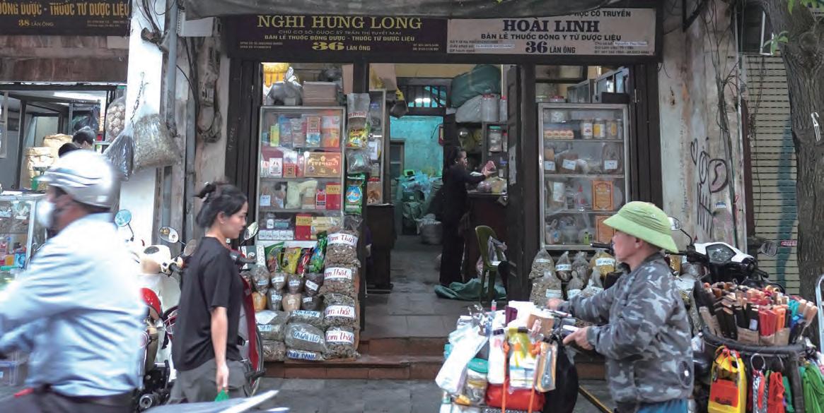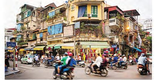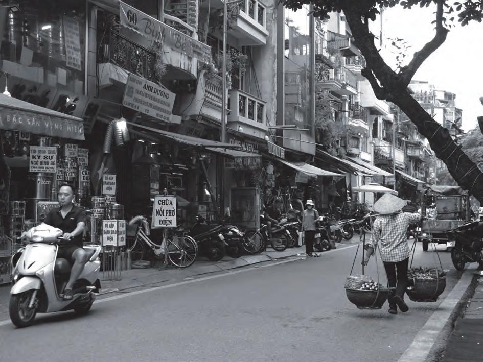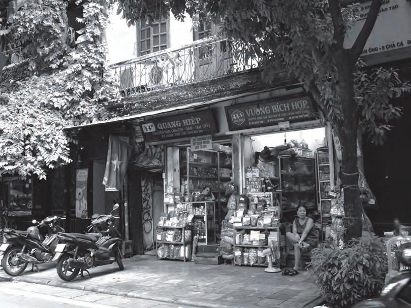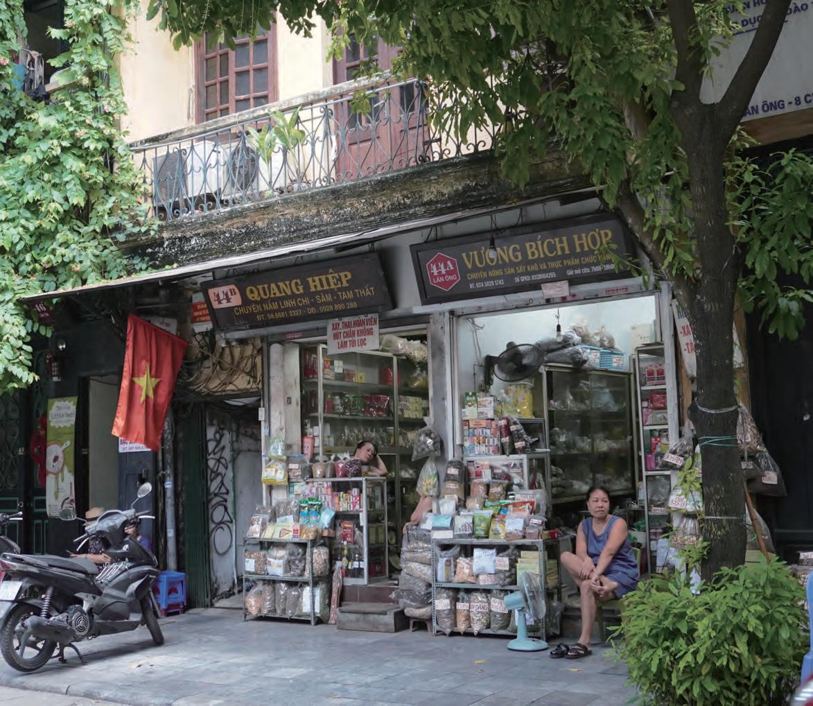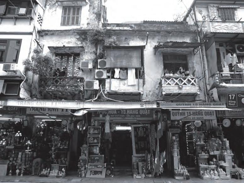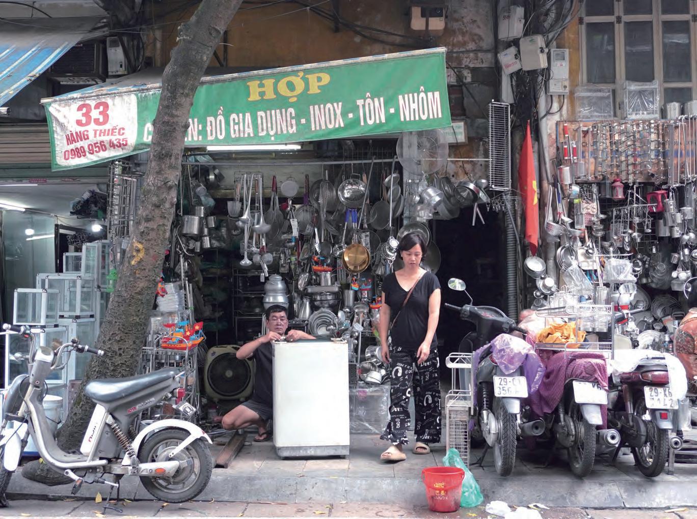 クなど、扱う製品(Hàng)の名がそのまま通り名と なった。15世紀からは華僑が住みはじめ、19世紀 後半以降の仏領時代はフレンチヴィラが建てられ るなど、往時の面影はほぼ残っていない。だが時代 や商売が変わっても商人たちはこの街でたくましく 生きている。