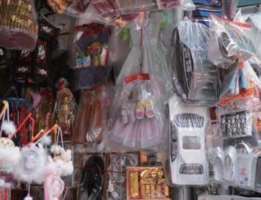 「子どもの頃、この辺りでは冥器のほかに、中秋節に 飾る鯉の提灯や、お正月テト(Tết)用の紙製の造花 なども販売されていました。現在では冥器も取り扱っ ていますが、子どものおもちゃや季節ごとの装飾品が 中心です。売れ行きが落ちたため、今は家族では冥 器を作っていません」とフオンさんは語る。