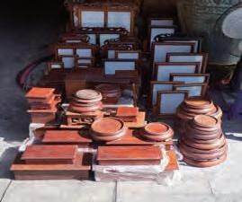 今からは想像しがたい当時の様子だが、もはや木工品 だけを販売する店はほとんど残っておらず、主に祭具や電 灯、陶器の香炉、旗などが売られている。クアンさんの店 は、木工品を作りながら販売する数少ない店の1つ。職人 は鯉、バラの花など昔ながらの意匠で制作するのみならず、