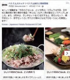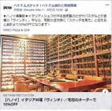 芸術の秋! ハノイの劇場を巡ってアートを楽しむ 046. Now Open 今月の新規店舗 047. Topix 今月のトピックス 049. 今月のうまい店(ステラーステーキハウス) 053. 買いたい新書(ベトナムグラスクラフトプロダクション) 056. スクールガイド(ベトベトイングリッシュ) 060. てくてく近辺調査隊(トニュオム通り) 062. 北部地図