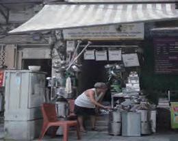 ハンティエック通り11番地の家の 前にある、家庭用の金属製品店の 店主。家族が4世代にわたって住ん でいる自宅の前で、コーヒーのドリッ パーや錫製のケーキ型、家庭用の ステンレス製品などを販売している。 親戚の職人が作った鉄製のおもちゃ の船が自慢の品。