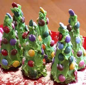 tree trunks icing free. Add smarties or similar candies to icing to look like Christmas ornaments. Add a smartie or star shaped candy on top of each Christmas Tree. Arrange the Christmas Trees on a plate or tray. Sprinkle icing sugar to look like a gentle snow fall. Use as a centrepiece.