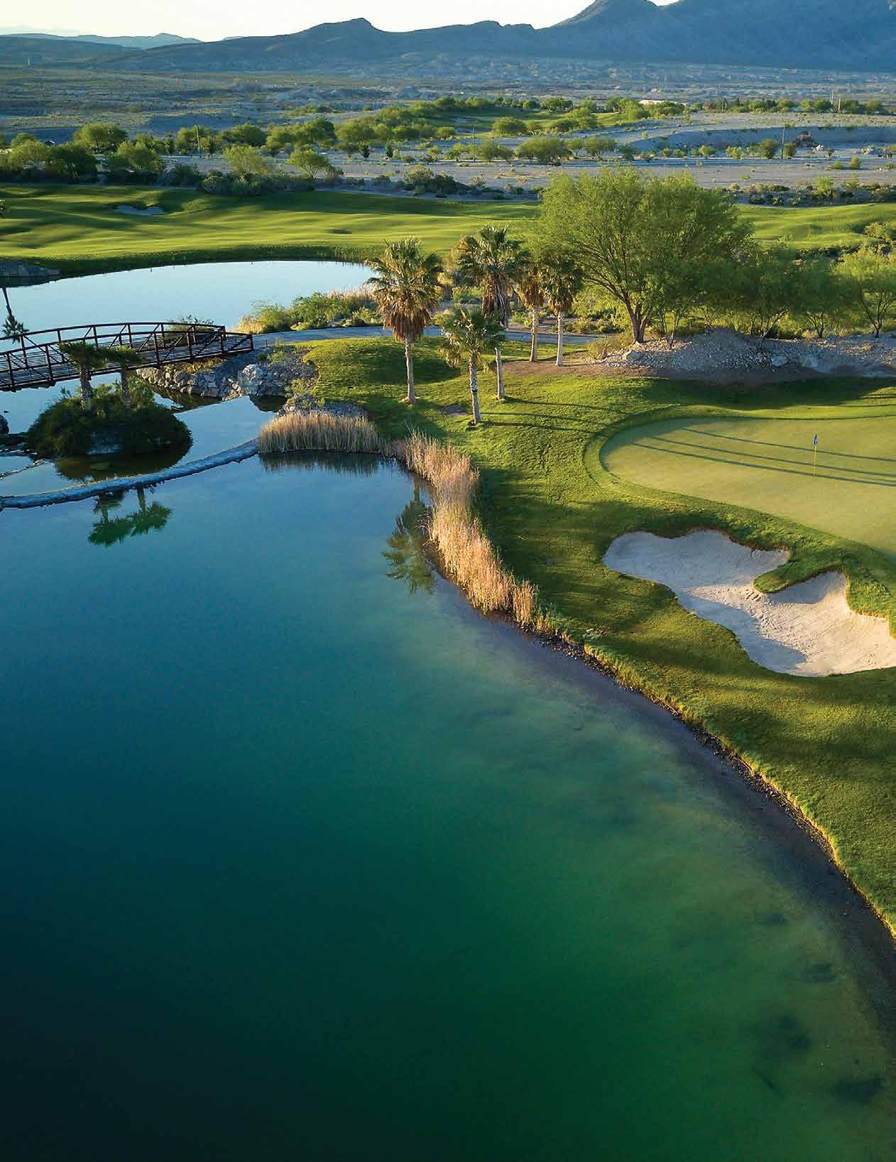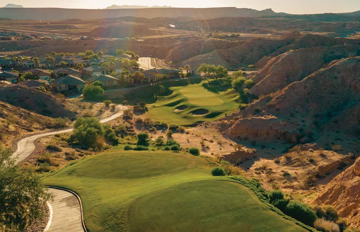 The Arnold Palmer-designed Palmer Course (below) at the Oasis Golf Club offers emerald green fairways cradled in isolated canyons, a box canyon enshrining a lush green, four unique signature holes, elevated tees with majestic tee shots, and numerous hazards created by Mother Nature. The Palmer Course played host to the Golf Channel’s Big Break: Mesquite and has been ranked as “One of the Best You Can Play” by Golf Digest