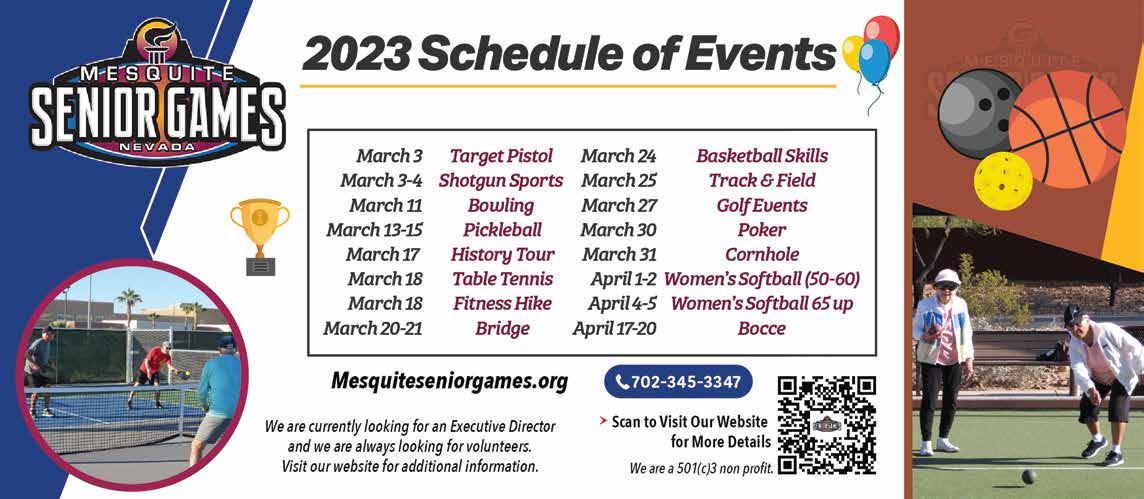 Make sure to check out the article and the schedule for the Mesquite Senior Games. Even if you do not wish to participate, you will enjoy being in the stands and cheering on these amazing athletes. Please enjoy the beautiful spring days ahead in our region.