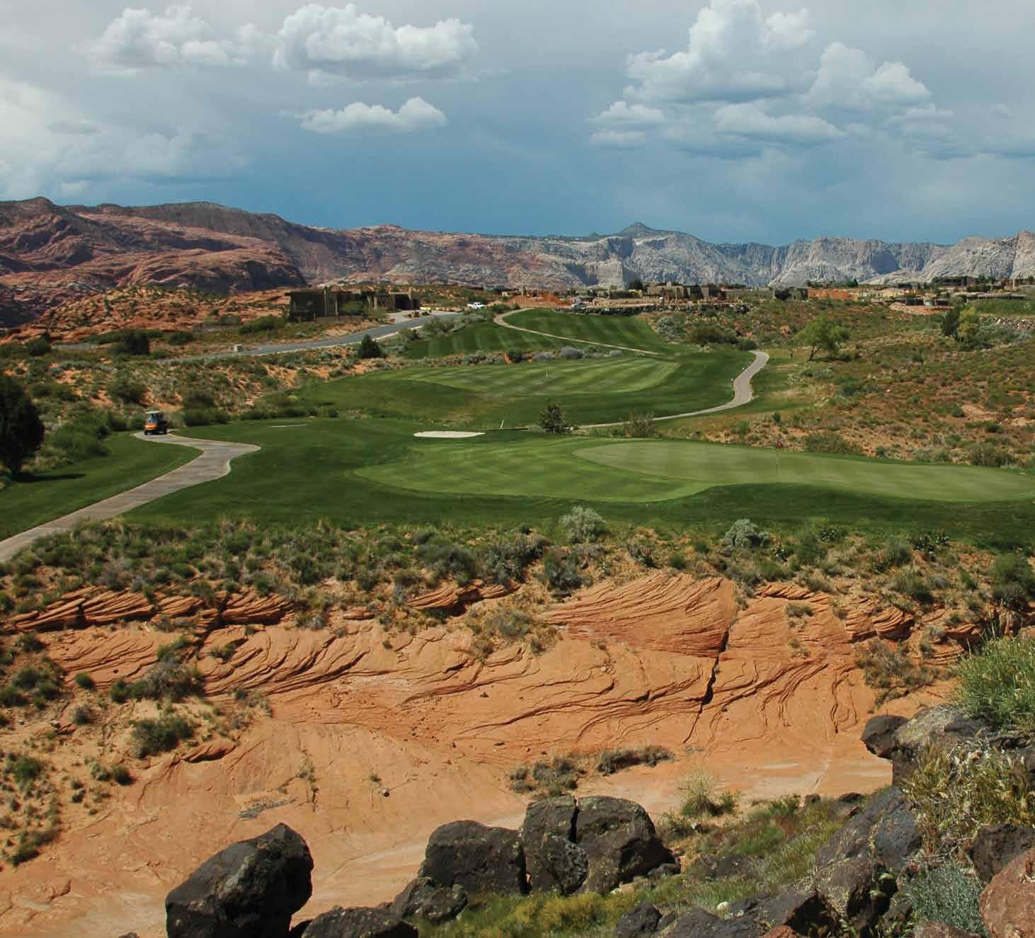 The Canyons Course (left) is molded perfectly to its natural setting at the Oasis Golf Club, offering a wide variety of challenging holes and elevated tee boxes. The generous fairways and smooth Bermuda greens make the course player-friendly and are a refreshing change of pace.