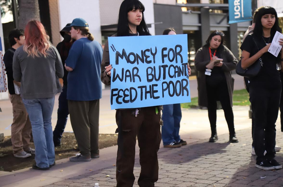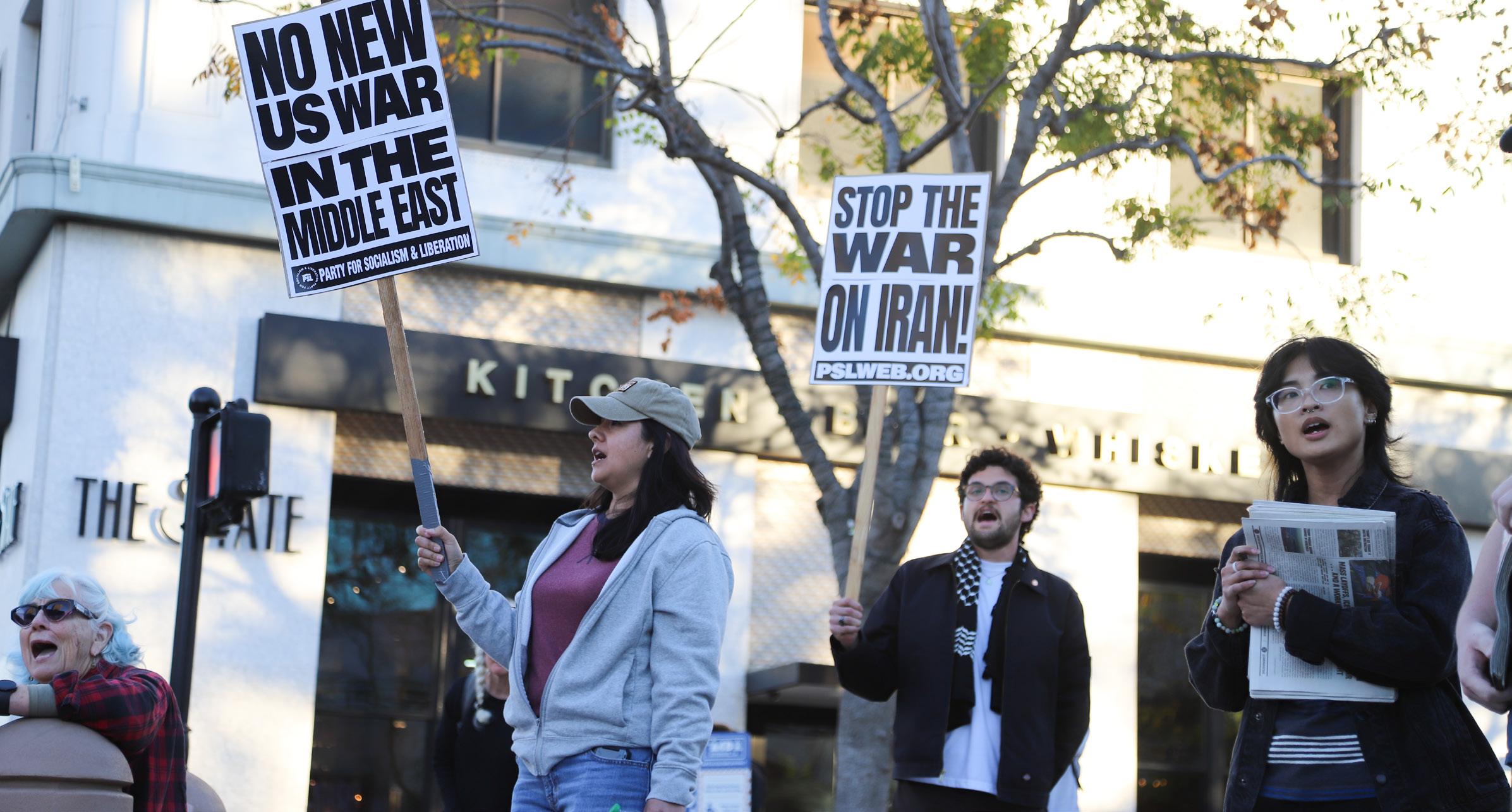 Nearly 40 protesters gathered at the Cesar Chavez Memorial in downtown Riverside on March 2 in response to the ongoing USIsraeli attacks on Iran.