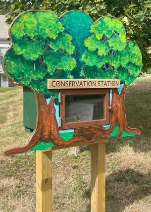lew teich, a member of the Conservation Commission, has built an artistic “Conservation station,” installed next to the town office parking lot, which contains materials about nature and conservation to take on loan.