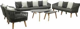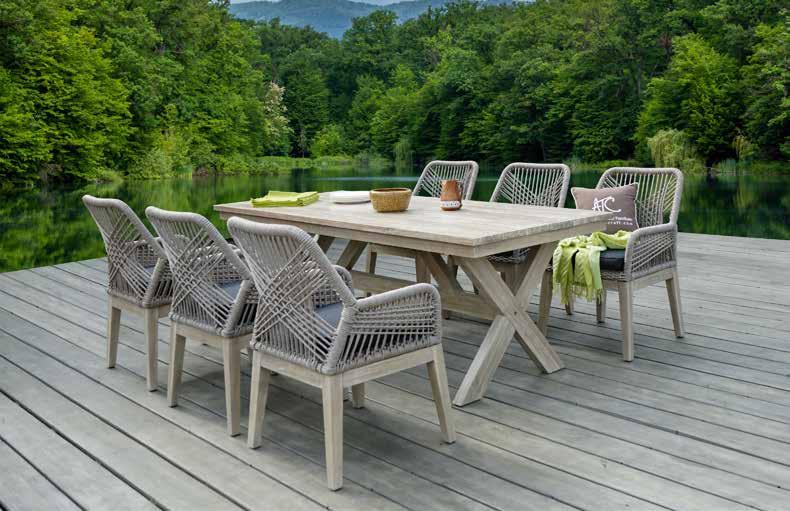 Round Rope, alu frame, brushed wooden legs, 5cm thickness cushion, water repellent fabric 250g, piping, Brushed Wooden Table