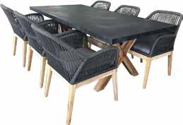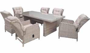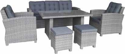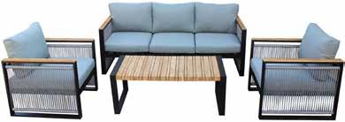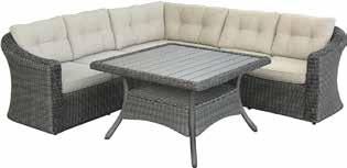 12mm Round HDPE wicker, alu frame, 15cm thickness cushion, water repellent fabric 250g, piping, Wooden Table