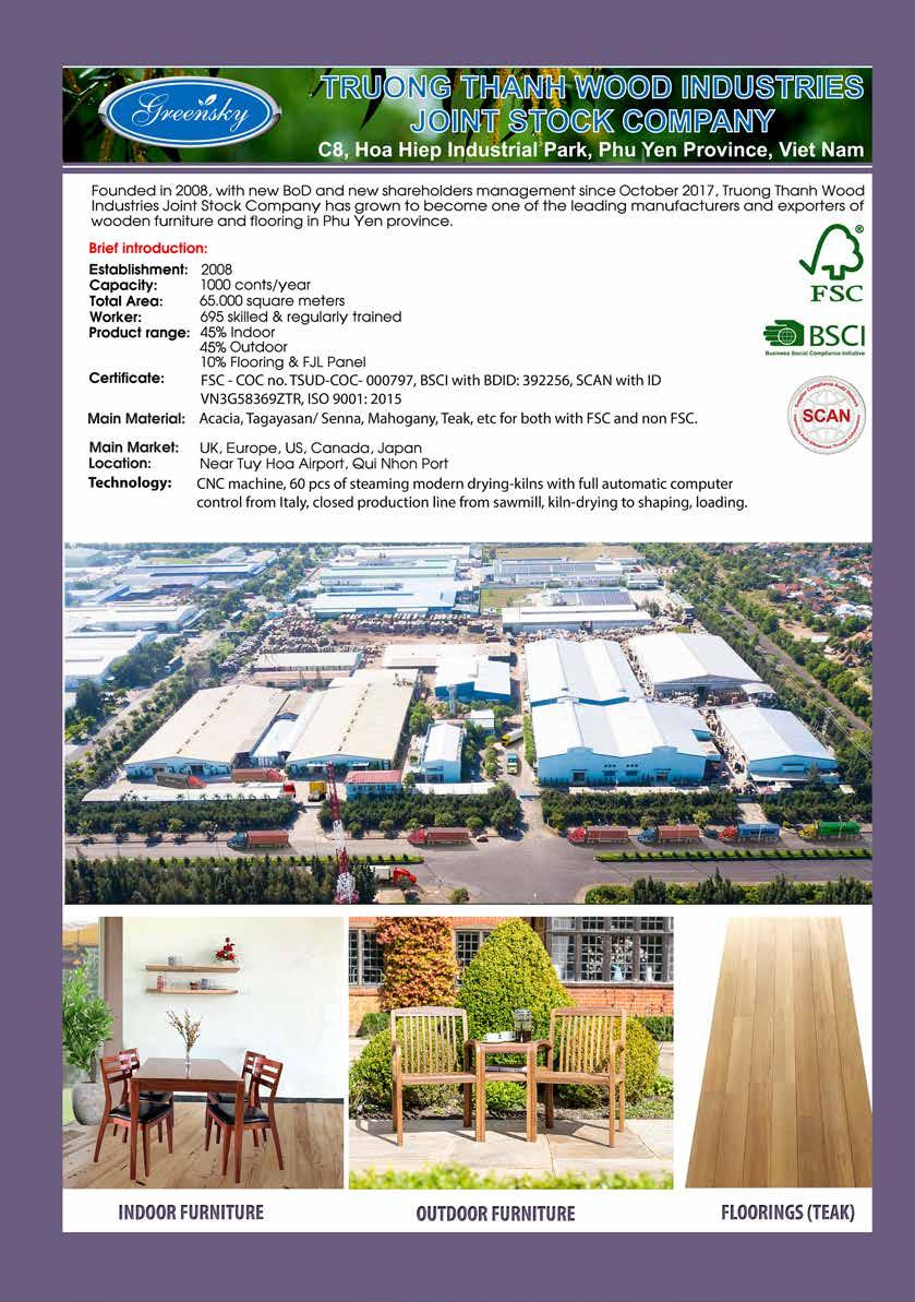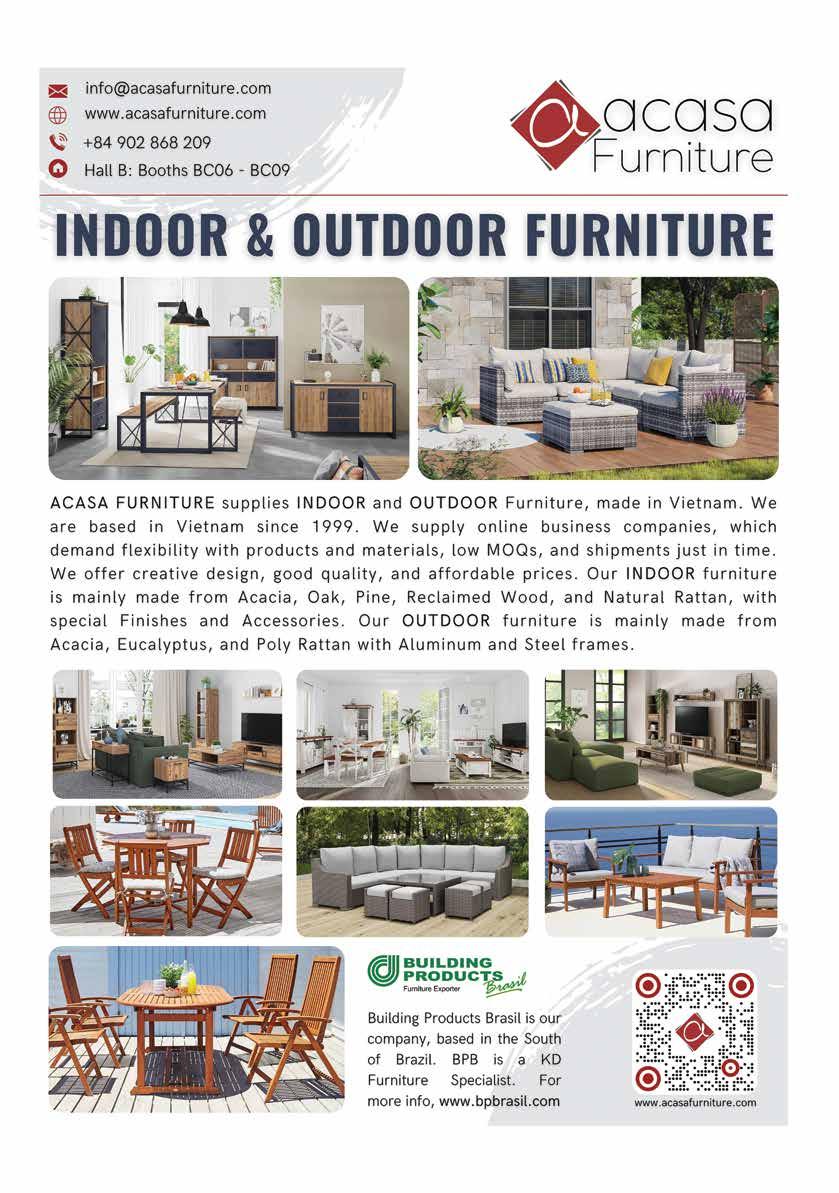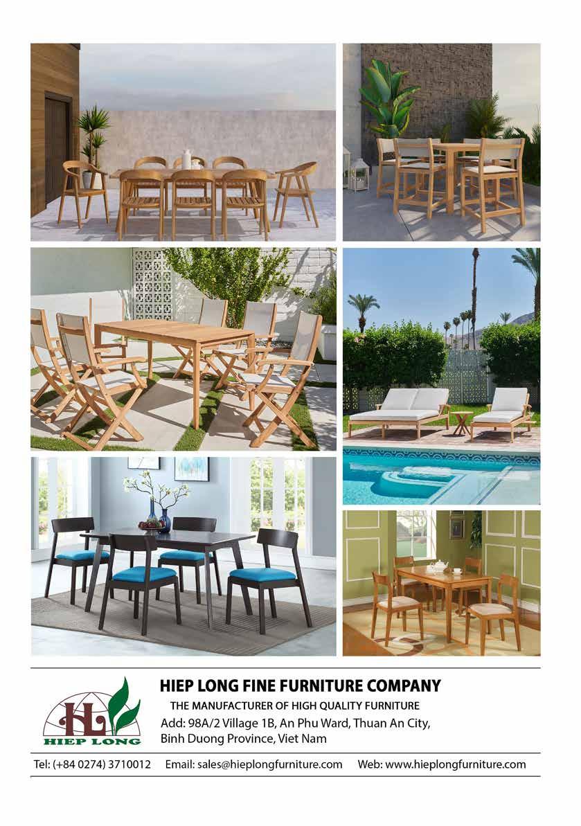 Manufacturing: Outdoor furniture (Acacia, Eucalyptus, Teak, Oak…) and Wicker furniture (wood combined with aluminum, metal, textile and wicker)