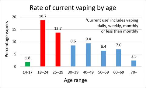 According to government statistics, about 7% of adults vape, and up to 20% of current smokers vape.