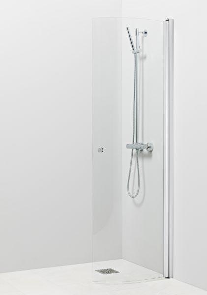 PURO 4 kaarevaa suihkuseinää on saatavana kahdessa eri korkeudessa, 2037 mm ja 2287 mm. Kuvan seinä (750x2037) kirkkaalla lasilla ja nuppivetimellä 285 €.