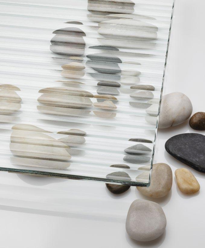 Linjalasin hienostunut viivakuviointi tuo kylpyhuoneeseen modernia eleganssia.